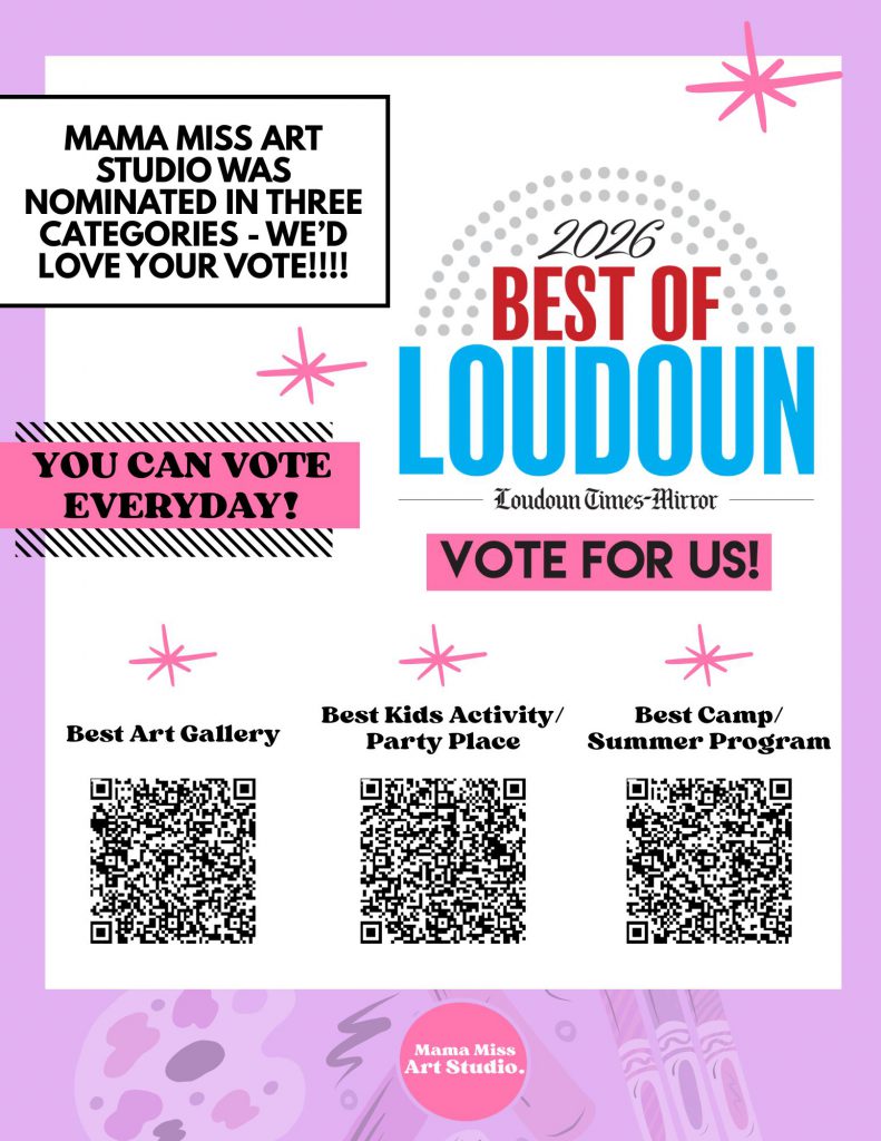 In our very first year as a brick-and-mortar studio, Mama Miss Art Studio has been nominated in THREE categories for the 2026 Loudoun Times-Mirror Best of Loudoun.